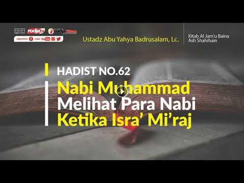 Nabi Muhammad Melihat Para Nabi Ketika Isra’ Mi’raj adalah bagian dari kajian Islam ilmiah dengan pembahasan kitab الجمع بين صحيحين (Al-Jam’u Baina As-Sahihain) yang disampaikan oleh Ustadz Abu Yahya Badrusalam, Lc. pada 17 Dzul Hijjah 1440 H / 18 Agustus 2019 M. KAJIAN HADITS TENTANG NABI MUHAMMAD MELIHAT PARA NABI KETIKA ISRA’ MI’RAJ Kita masuk hadits yang ke-62 dari Ibnu Abbas -semoga Allah meridhainya-, dari Nabi Shallallahu ‘Alaihi wa Sallam, beliau bersabda: رَأَيْتُ لَيْلَةَ أُسْرِيَ بِي مُوسَى: رَجُلًا آدَمَ، طُوَالًا، جَعْدًا، كَأَنَّهُ مِنْ رِجَالِ شَنُوءَةَ، وَرَأَيْتُ عِيسَى: رَجُلًا مَرْبُوعًا، مَرْبُوعَ الخَلْقِ، إِلَى الحُمْرَةِ وَالبَيَاضِ، سَبِطَ الرَّأْسِ، وَرَأَيْتُ مَالِكًا خَازِنَ النَّارِ، وَالدَّجَّالَز فِي آيَاتٍ أَرَاهُنَّ اللَّهُ إِيَّاهُ : { فَلاَ تَكُنْ فِي مِرْيَةٍ مِنْ لِقَائِهِ } “Ketika Isra’ mi’raj, aku melihat Nabi Musa: seorang laki-laki yang kulitnya putih, sangat tinggi, rambutnya ikal, seakan-akan beliau orang yang berasal dari Syanuah. Sementara aku melihat Nabi Isa: seorang laki-laki yang tidak tinggi tidak pendek, kulitnya putih kemerahan, rambutnya ikal. Dan aku melihat Malaikat Malik penjaga api neraka dan aku juga melihat Dajjal. Didalam ayat-ayat yang Allah perlihatkan kepadaku {maka kamu jangan merasa ragu terhadap pertemuannya}” Hadits ini menunjukkan bahwa Rasulullah Shallallahu ‘Alaihi wa Sallam diperlihatkan oleh Allah ketika Isra’ Mi’raj itu Nabi Musa, Nabi Isa. Apakah diperlihatkan dalam artian yaitu dengan jasadnya sementara Nabi Musa sudah meninggal dunia dan sudah dikuburkan. Yang jelas ini adalah alam ghaib, hanya Allah yang Maha Tahu dan Allah Maha Kuasa atas segala sesuatu.
